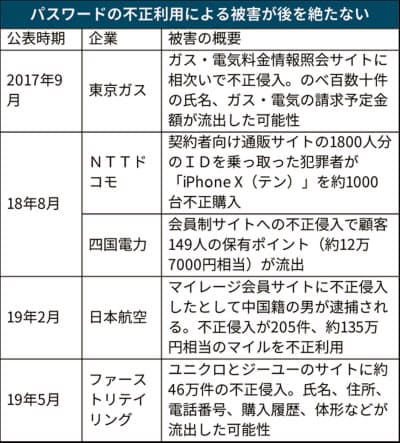 「ユニクロ」やNTTドコモなど大手企業の電子商取引(EC)サイトが、相次いで乗っ取り被害に遭っている。背景にあるのはパスワードの「罠(わな)」。手軽に本人確認できる一方で、ネット上には数十億件も流出し、犯罪者が容易に入手できる。ただし、多くの企業はシステム改修や顧客離れを懸念して、旧来の仕組みが温存されている。このままでは、被害拡大を食い止められない。